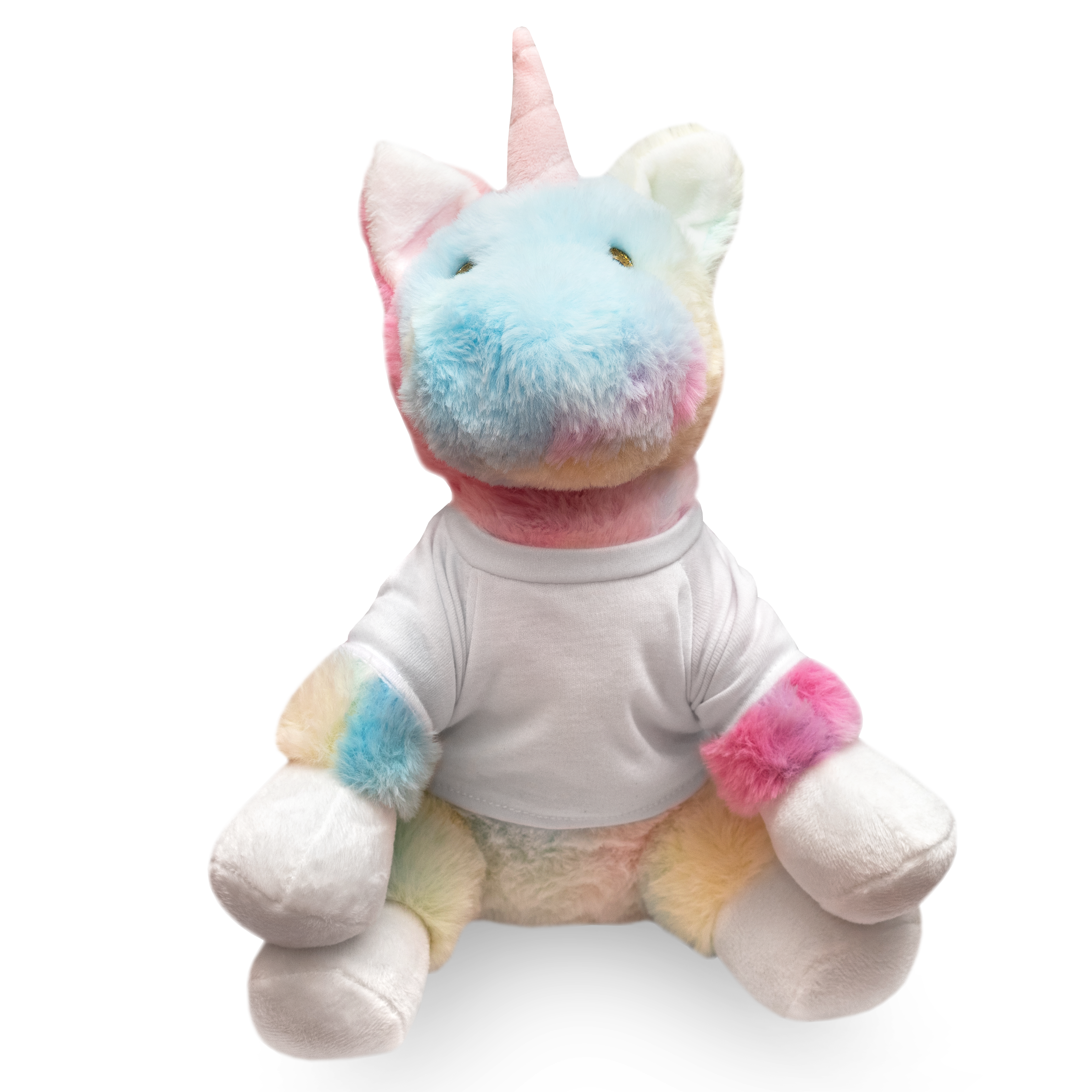 Jednorožec z heboučkého a měkkého plyše v bílém tričku určeném pro sublimační potisk. Hračku je možné zakoupit i bez potisku. Výška hračky vsedě je 25 cm. Je vhodná jako vtipný nebo romantický dárek k Valentýnu, narozeninám či k Vánocům, pro partnera, nebo děti.